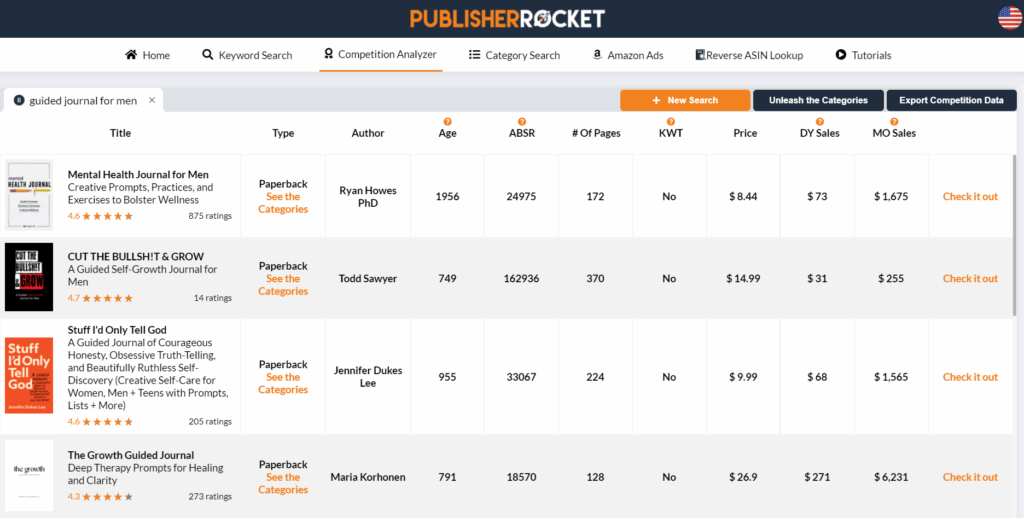 The Competition Analyzer tool gives you insight into books that are ranking for the keywords you want. You can see: