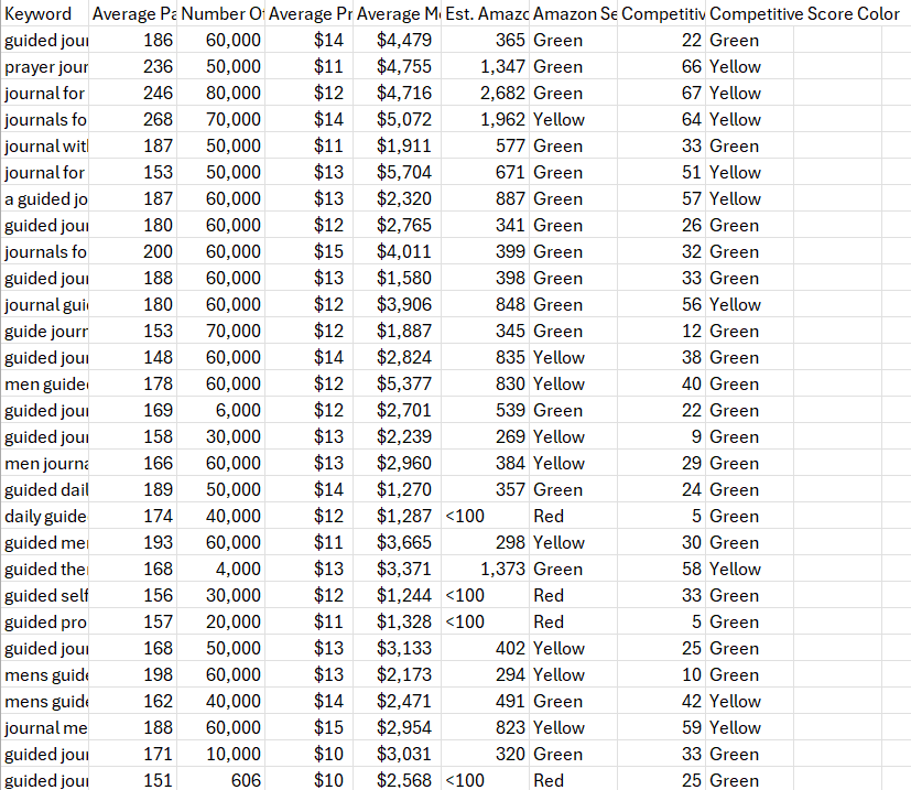 For the Healing series, we typed in multiple combinations of “healing journal,” “trauma journal,” “emotional health journal,” and even broader phrases like “guided journal for adults.” Some keywords had high search volume but extremely high competition, so we used Rocket to locate angle keywords, such as “healing workbook for men” or “self reflection prompts journal,” which had more manageable competition levels.